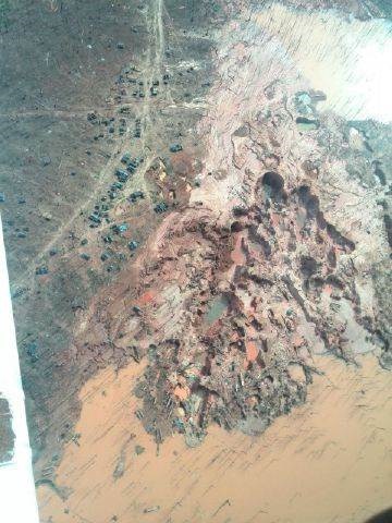 Una imagen muestra cráteres junto a pequeñas casas, que sugieren campamentos mineros ubicados en medio de la zona boscosa.