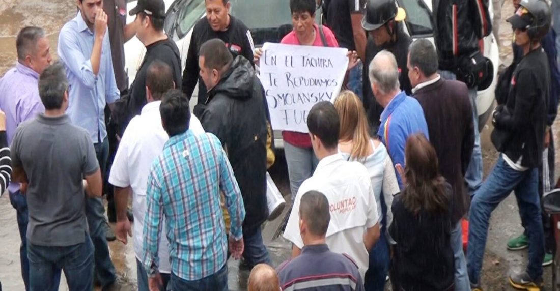 “¡Fuera Smolansky! En el Táchira no te queremos”, gritaban el grupo de alrededor de 20 hombres identificados con el movimiento Tupamaro que irrumpió en la sede de la alcaldía de San Cristóbal, este miércoles cuando el alcalde del municipio El Hatillo del estado Miranda se encontraba de visita en la institución