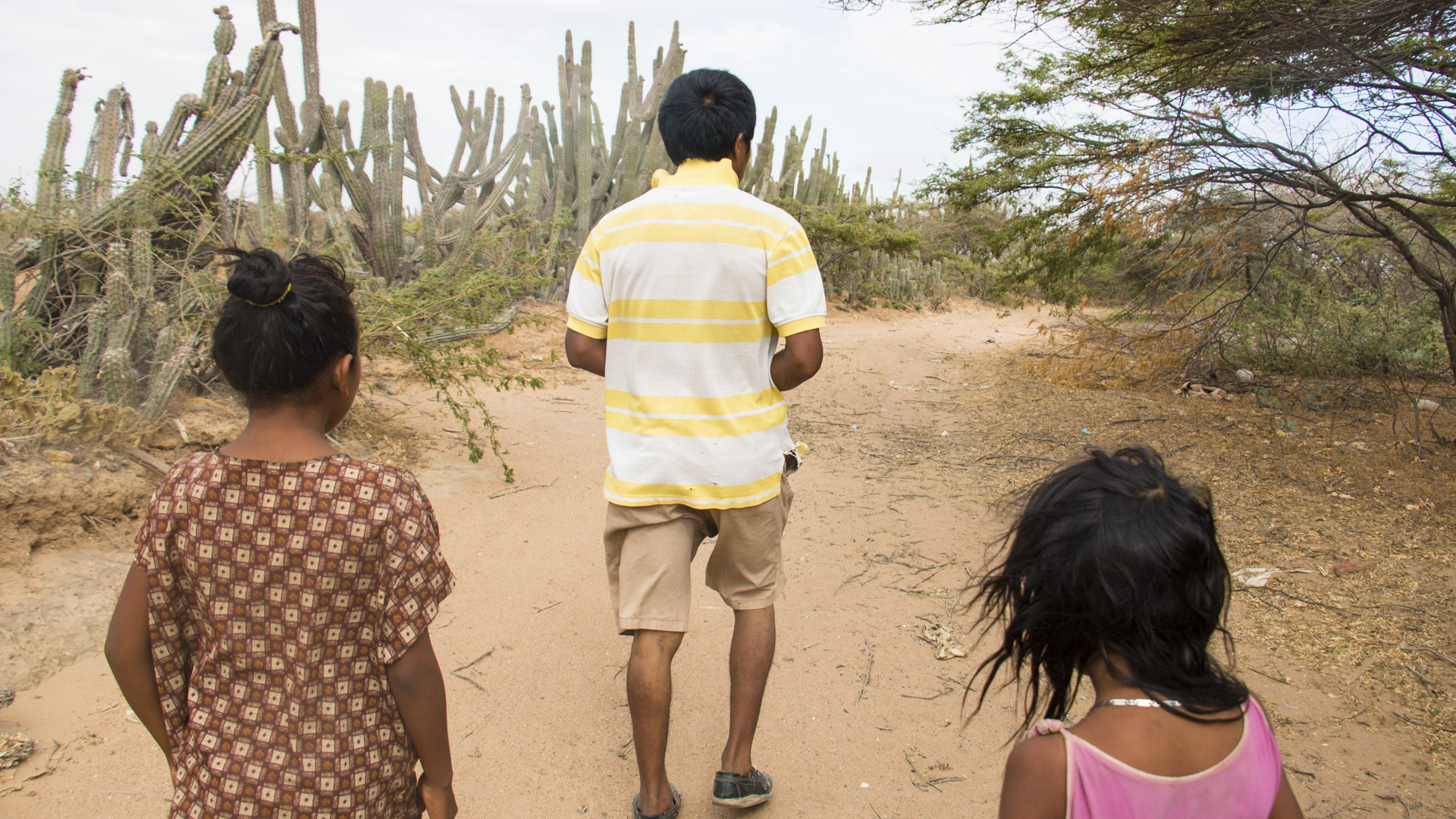 Arnaldo González, dirigente de transporte y vocero indígena de la Alta Guajira, denuncia que la falta de agua se suma a los males que padece la zona. Cuenta que la falta de comida lleva a muchos niños a hacer una práctica que hacían sus ancestros: buscar las «fruticas» que se encuentran entre los cactus.