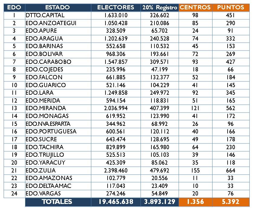 El CNE dispuso un cuadro en el que detalla cuántos electores deberán manifestar su voluntad por estado, con el fin de solicitar el revocatorio.