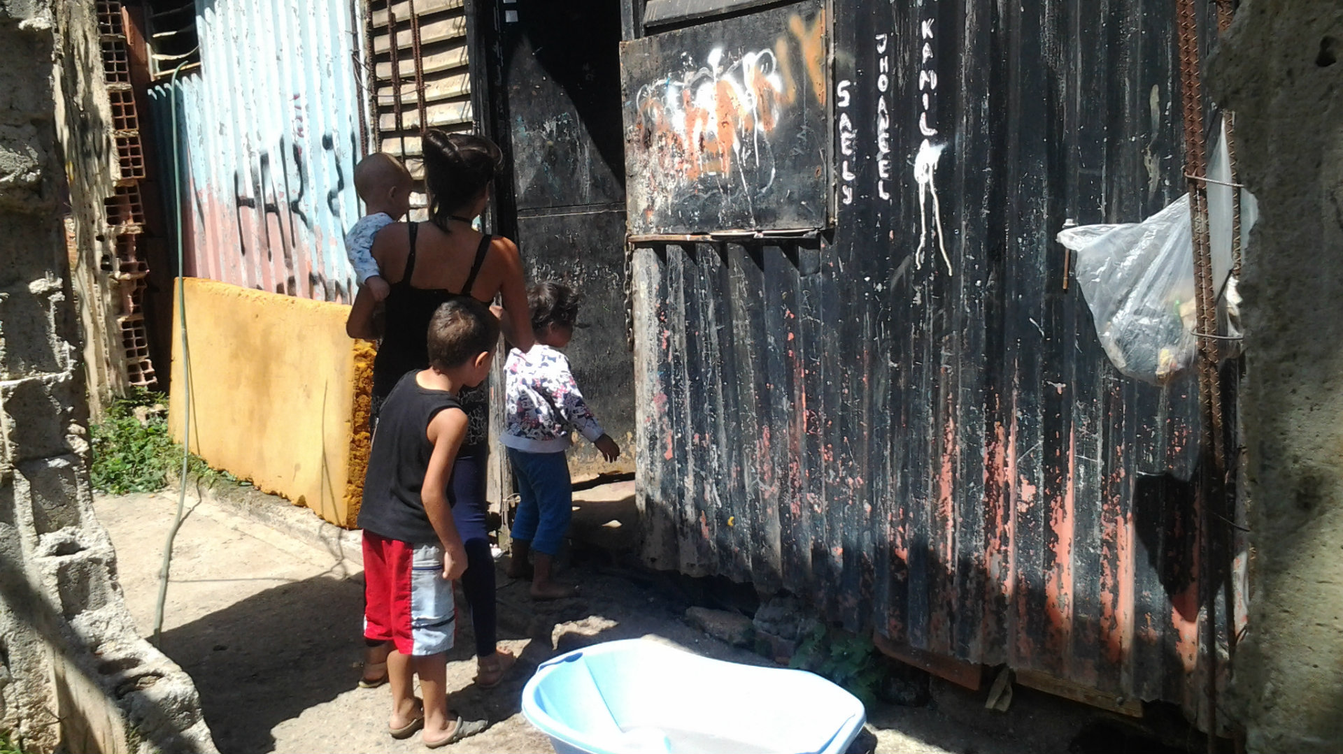 Daniel Martínez, es otro vecino que tiene 29 años en el barrio. Hace 19 años vive en unos de los incómodos contenedores, con sus dos hijas, esposa y suegra. “Nuestra vida es muy triste aquí, los servicios públicos como son el transporte, el agua potable, la vialidad y seguridad son un desastre. A toda esta tragedia, se nos suma ahora el problema de la falta de alimentos, recibimos una bolsa de comida por familia con pocos productos cada 53 días, cuando llegan. Aquí la gente está pasando hambre parejo».