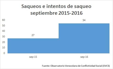 En septiembre se documentaron 21 saqueos y 33 intentos de saqueo. Esta cifra representa 100% más que en septiembre de 2015.