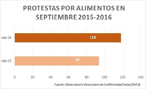 Las 118 protestas documentadas en septiembre, en rechazo a la escasez, desabastecimiento y alto costo de los alimentos, representan 25% más con respecto a septiembre de 2015.