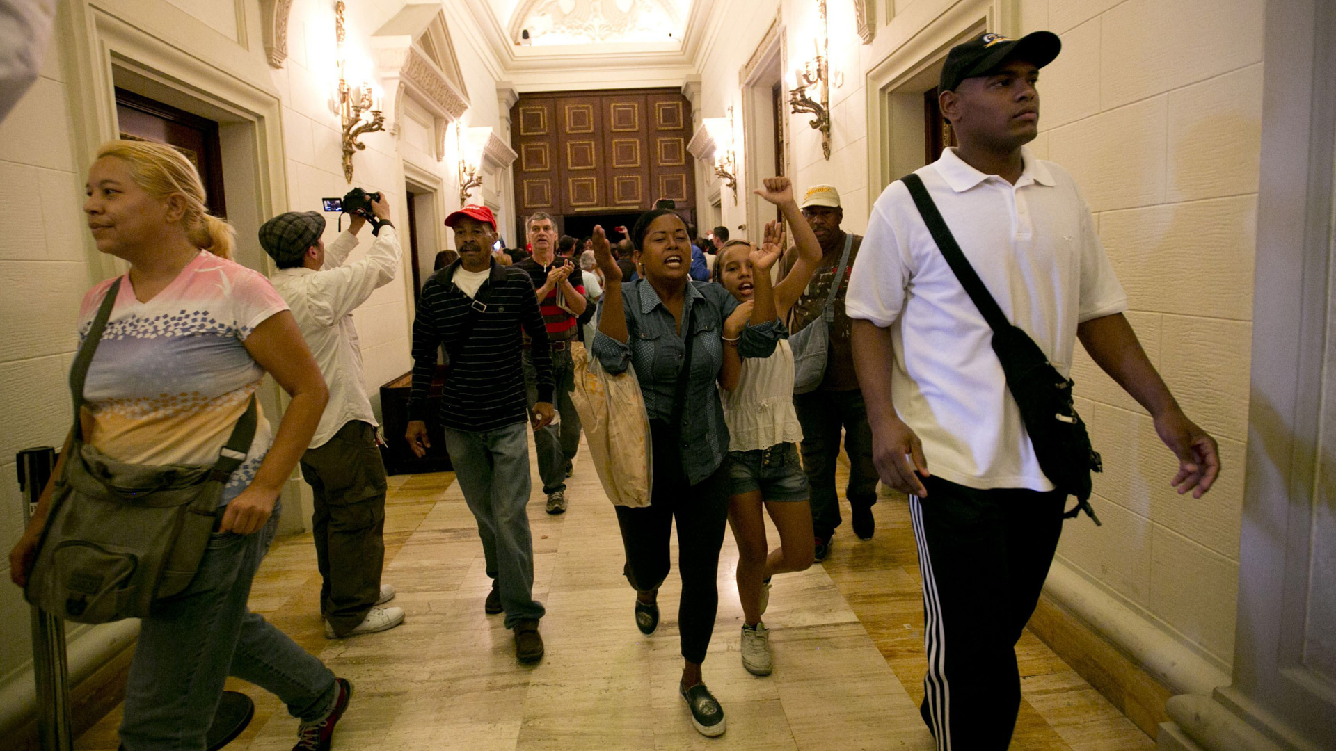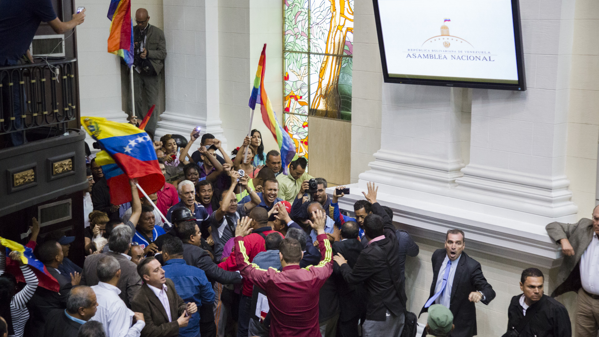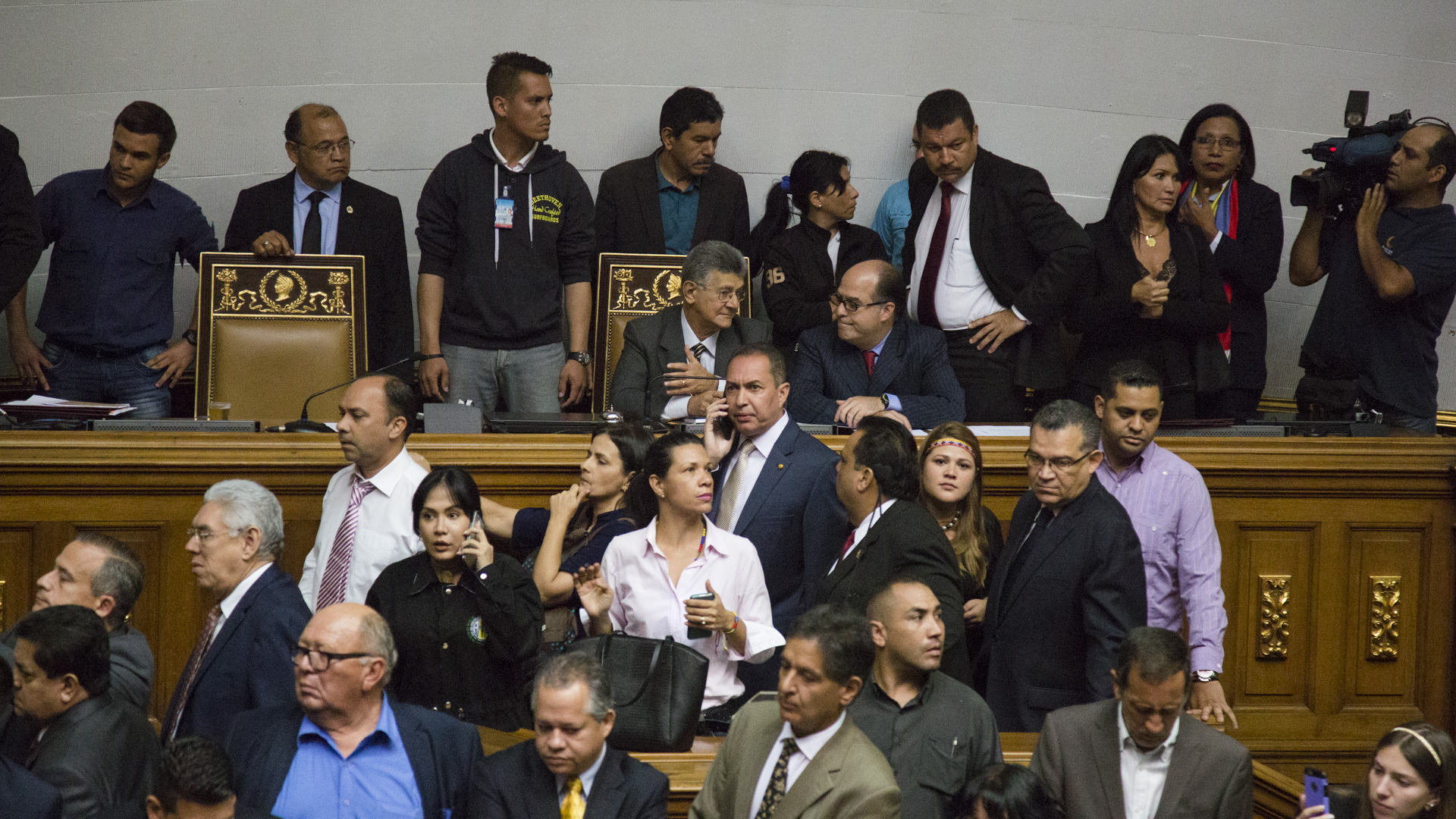 La sesión comenzó con normalidad, a pesar de que alrededor del Palacio Legislativo se concentraba un grupo de personas identificadas con el chavismo. Pasado el mediodía, los simpatizantes del oficialismo ingresaron a la fuerza al parlamento, interrumpiendo la sesión por al menos 40 minutos.