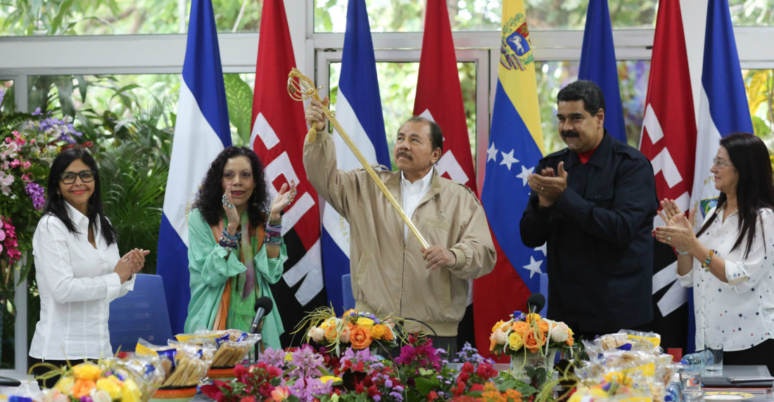 El presidente nicaragüense, Daniel Ortega, conmemoró este miércoles con su par de Venezuela, Nicolás Maduro, el décimo aniversario del ingreso de Nicaragua a la Alianza Bolivariana para los Pueblos de Nuestra América (Alba)."Estamos cumpliendo 10 años de la incorporación de Nicaragua al Alba, queríamos celebrarlo con el pueblo venezolano. Durante todos estos 10 años ha estado aquí, presente, la revolución bolivariana", dijo Ortega, durante el acto, realizado en Managua.Nicaragua ingresó al Alba el 11 de enero de 2007, en un acto en Managua presidido por Ortega, el fallecido presidente venezolano Hugo Chávez, el presidente boliviano Evo Morales y el exvicepresidente cubano Ramón Machado.Maduro aprovechó la oportunidad para proponer a Ortega un plan "profundo de integración económica y productiva" entre Nicaragua y Venezuela, para establecer una "zona de comercio más rica", con la participación de los sectores públicos y privados de cada país, que luego pueda expandirse al resto de países del Alba.El mandatario venezolano también hizo a Ortega una entrega "amorosa y oficial" de la réplica de la espada el "general del pueblo soberano" de Venezuela, Ezequiel Zamora."Te entrego esta espada, réplica (de la) de Ezequiel Zamora, que es la expresión de nuestro compromiso con la justicia con los pueblos, y con la unión de nuestra América", dijo Maduro a Ortega.El Alba está compuesto por Antigua y Barbuda, Bolivia, Cuba, Dominica, Ecuador, Granada, Nicaragua, San Cristóbal y Nieves, Santa Lucía, San Vicente y las Granadinas, Surinam, Venezuela, más Haití como miembro de Honor. Honduras formaba parte, pero se retiró.Los países de la ALBA forman parte también de PetroCaribe, alianza que cuenta también con otros países de la región a los que Venezuela suministra petróleo con precios ventajosos, un proyecto que se ve amenazado por la caída de los precios del petróleo y la grave crisis que atraviesa Venezuela.Nicaragua fue el cuarto país en unirse al Alba, en enero de 2007, tras Cuba, Venezuela y Bolivia.