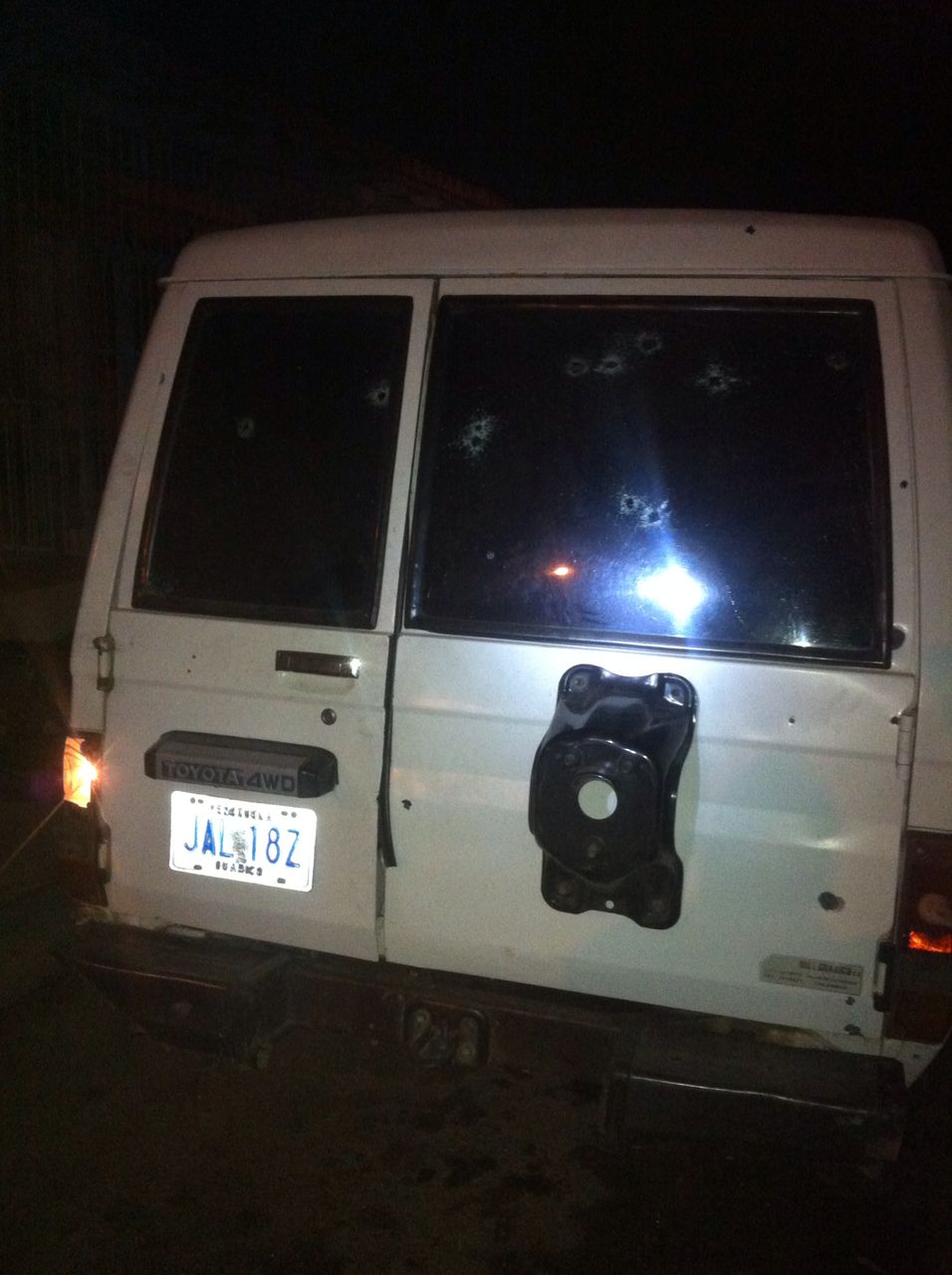 Al momento de huir del lugar, los delincuentes se encontraron con una patrulla del Cuerpo de Investigaciones Científicas, Penales y Criminalísticas (Cicpc) estacionada a la que también le dispararon y lanzaron una tercera granada que no explotó.