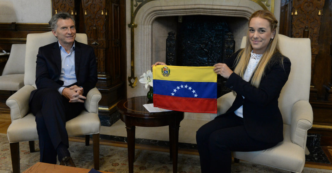 El presidente de Argentina, Mauricio Macri, se reunió este jueves con Lilian Tintori, esposa del encarcelado opositor venezolano Leopoldo López, y manifestó su «preocupación» por la disolución de la Asamblea Nacional de Venezuela, por lo que llamó a «recomponer el orden democrático».En el encuentro, que tuvo lugar en la Casa Rosada -sede del Gobierno argentino en Buenos Aires- el jefe de Estado insistió en la necesidad de que se cumpla con un calendario electoral en el país gobernado por Nicolás Maduro y pidió por la liberación de los «presos políticos», explicó la Secretaría de Derechos Humanos argentina en un comunicado.