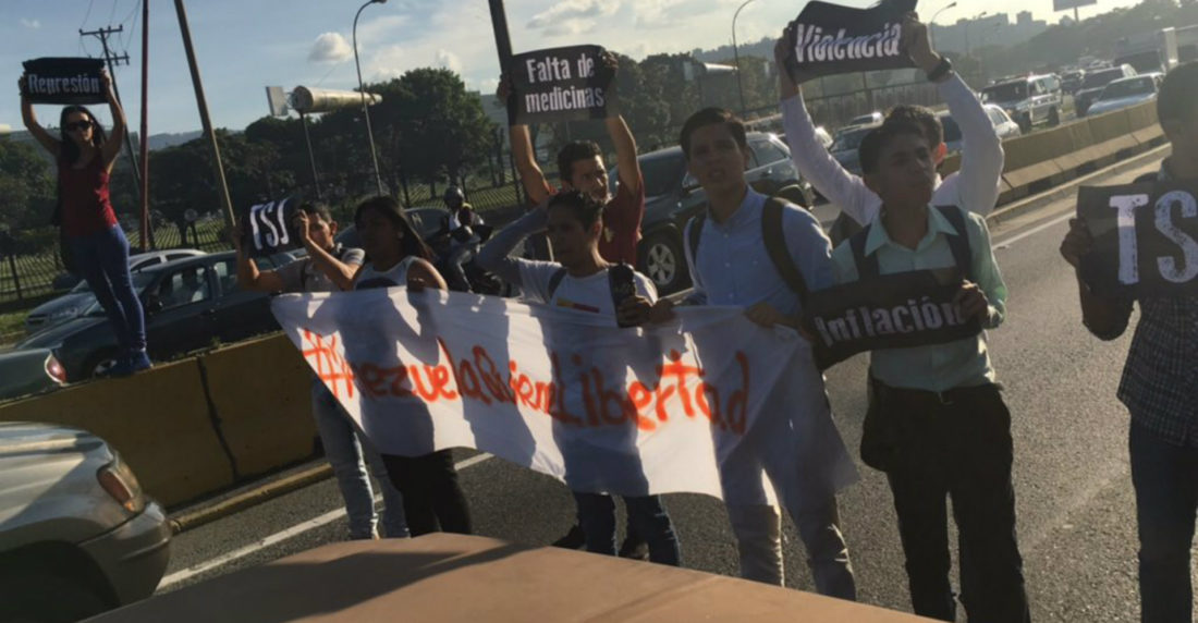 Mientras, en Santa Fe, los activistas en Vente Venezuela continúan la protesta y obstaculizan el tránsito parcialmente.
