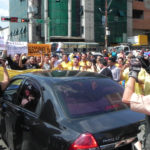 Los manifestantes aprovechaban el cambio de luz en el semáforo frente al Palacio de Justicia para desplegar sus pancartas y pedir democracia, libertades y respeto a la Constitución. Muchos conductores se detenían para apoyar a los que protestaban.
