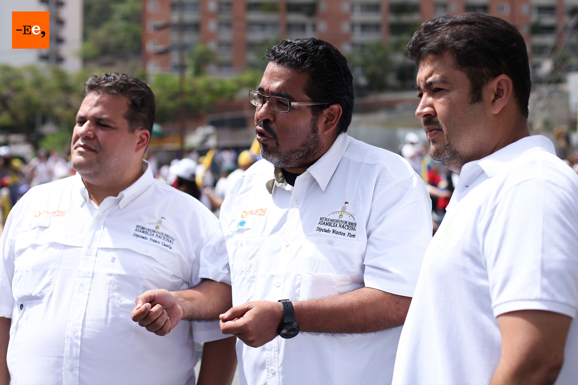 En el Distribuidor de Santa Fe se encontraban diputados de Voluntad Popular como Winston Flores que animaba a las personas con el lema del partido “El que se cansa pierde” y “Fuerza y Fe”.