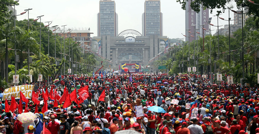 En los alrededores de la petrolera estatal se hablaba con acento y gracejo oriental. Además de Sucre, había manifestantes que fueron trasladados desde Monagas, Delta Amacuro y Anzoátegui. “Aquí están los trabajadores de PDVSA”, aupaban desde una tarima. “Solamente estamos calentando”, decía el hombre que hacía las veces de orador y azuzador de euforias. La gente esperaba la señal que indicara la hora de avanzar. Son los “petroleros en defensa de la revolución”, rezaba una pancarta. Tanto que la consigna de la mañana era: «Si se prende un peo, con Maduro me resteo». El puño izquierdo alzado acompañaba el leco de guerra.