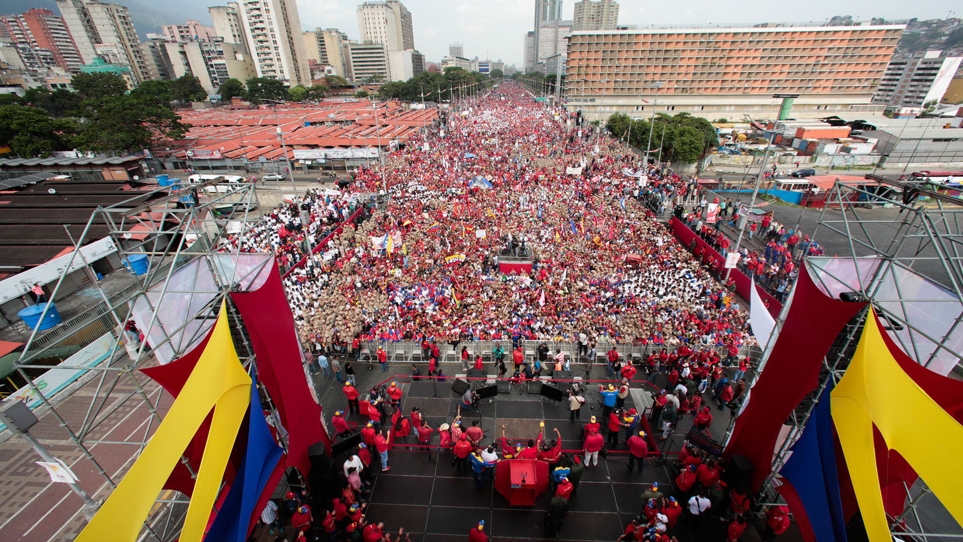 La tribuna en el Rincón del Taxista estaba montada desde temprano. Desde allí el elegido de prender y excitar a la “famiiiiliaaaaa” era Winston Vallenilla. Al mediodía se le unió Elías Jaua. Llegó en moto escoltado por al menos seis motorizados más. A diferencia de Maduro en San Félix, Jaua sí recibió cariño en Catia. La gente se le fue encima para abrazarlo. Por ahí estaba Dalila Ramos que atravesó toda Caracas para llegar al punto de concentración de Agua Salud. Es de La Bombilla en Petare. “A donde fue Chávez tres veces”, precisaba. “Vine en resguardo de la soberanía de la patria. Somos disciplinados. No venimos con odio, como la derecha, estamos en paz. No necesitamos la injerencia extranjera. Antes nos hacían ver que necesitábamos a los Estados Unidos y gracias a Chávez eso se acabó. Despertamos”. Conjura otro embrujo: “La escasez es culpa de la oligarquía”. La acusa de acaparar los medios de producción. El discurso oficial ha calado y en Catia, la Urdaneta y la Bolívar lo repetían al dedillo.