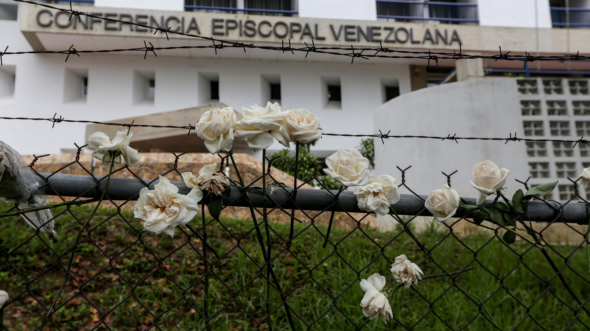 Un primer grupo llegó a la CEV desde la urbanización de clase media de Montalbán. Raúl Herrera, párroco de la UCV, marchó junto a un grupo de mujeres que rezaban el Padrenuestro con gorras de colores del tricolor nacional.