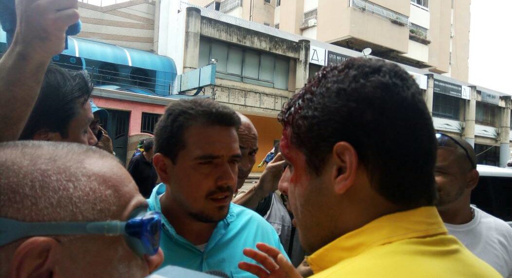 La represión de la marcha opositora en El Paraíso ya tiene un herido: el diputado José Manuel Olivares padeció el impacto de una bomba lacrimógena en la cabeza. Desde temprano la Guardia Nacional Bolivariana intenta disolver la concentración en varios puntos de Caracas.