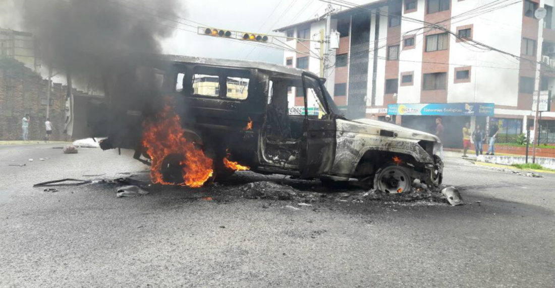 Testigos del hecho aseguraron que el vehículo incinerado pertenece al Servicio Bolivariano de Inteligencia Nacional, Sebin.