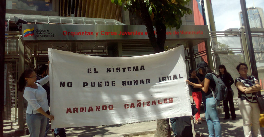 Las únicas notas que sonarán este jueves en el Centro de Acción Social por la Música serán las entonadas por unos cuarenta músicos cuando cantaron el Himno Nacional en homenaje a Armando Cañizales, miembro del Sistema de Orquestas Simón Bolívar asesinado ayer durante una protesta por el impacto de un objeto, hasta ahora desconocido, en el cuello.