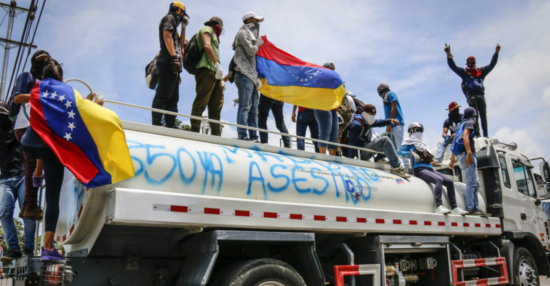 Al irse el «grueso» de las personas que protestaron, quedó un grupo de manifestantes armando barricadas con lo que tenían a mano como cauchos, basura, escombros y un camión cisterna.