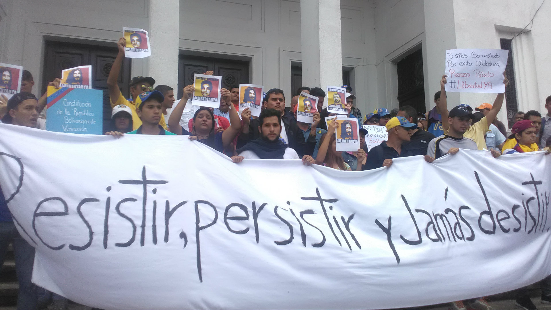 La ocasión fue propicia para que los jóvenes de la dirigencia estudiantil, con fotografías en mano, recordaran a sus compañeros tachirenses “presos del régimen” y que en la actualidad están detenidos en la sede del Servicio Bolivariano de Inteligencia Nacional (Sebin) en el Helicoide. Entre ellos al diputado a la Asamblea Nacional, Renzo Prieto, que cumple este 10 de mayo tres años en prisión.