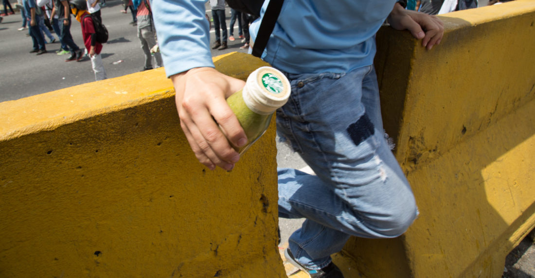 Las “bombas biológicas” eran sacadas de los bolsos de los antichavistas. Tenían diferentes presentaciones y muchas de ellas contenían heces humanas o de animales, explicó uno de los manifestantes luego de la represión.
