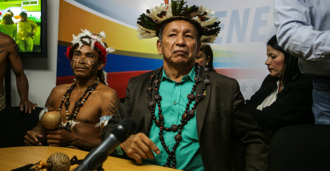 Liborio Guarulla, gobernador de Amazonas, lanzó la semana pasada un maleficio Baniva —propio de su etnia— delante de las cámaras al Gobierno y este miércoles llevó adelanta “La marcha de los shamanes y maracas” que salió desde dos puntos en Puerto Ayacucho: el mercado municipal y el Polideportivo.