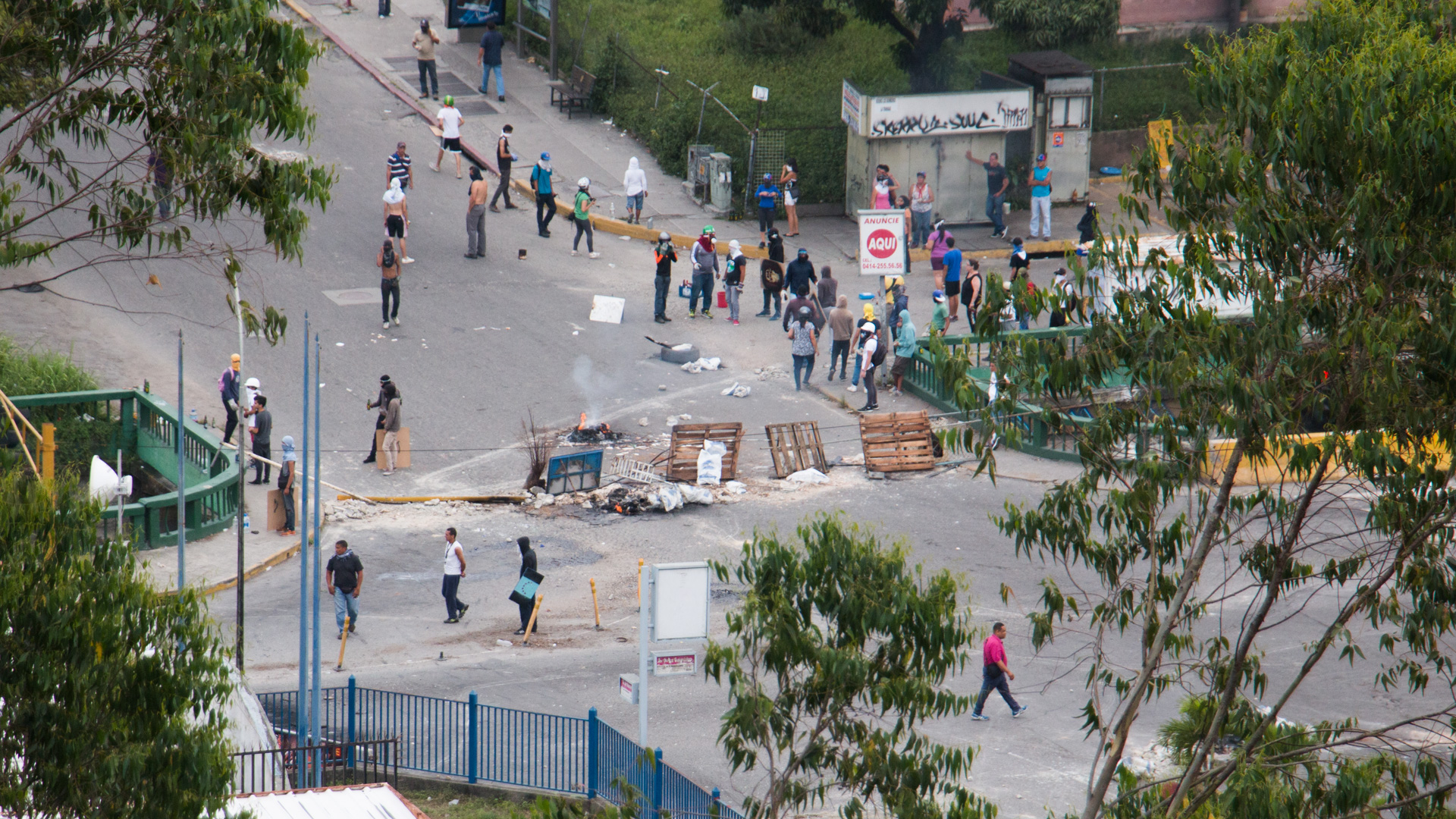 Luego de intentar subir por Santa Inés para llegar a Baruta y constatar que el acceso estaba cerrado, lograron pasar el obstáculo de Santa Fe para subir a Baruta por el Centro Comercial Concresa y Terrazas del Club Hípico. Calles más estrechas. Igual, signos de lucha y barricadas. Apartaron unas cuantas para poder pasar. Al llegar a la estación de servicio cerca del casco de Baruta, un contingente de la GN se enfrentaba con un grupo de manifestantes que, con fuego, rejas y palos, bloqueaban la pequeña calle. Fallida la acción.