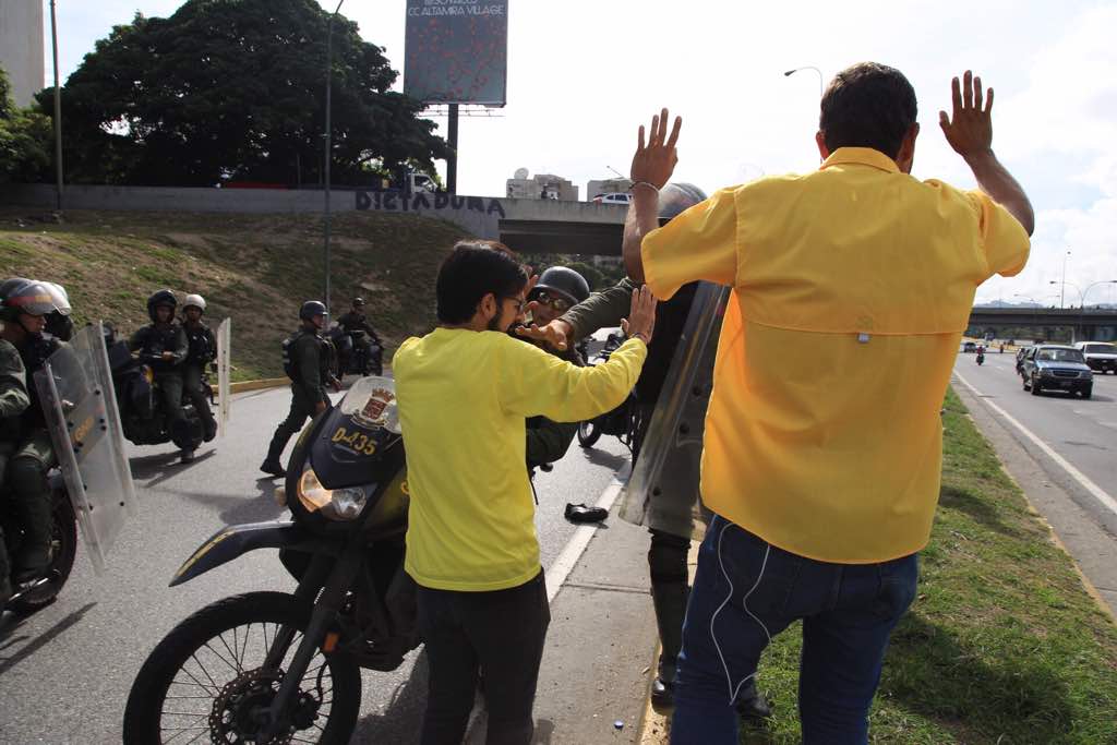 El parlamentario mostró una alcantarilla profunda con humo. “Allí lo lanzaron”, acotó. “Me dieron con un puño en la boca. Lanzaron lacrimógenas y se mantienen dando vueltas con las motos por la autopista (Francisco Fajardo)”, señaló. Vecinos de la zona y testigos aseguran a El Estímulo que desde tempranas horas los funcionarios de las fuerza de seguridad del Estado han reprimido el punto de concentración que está frente al Centro Ciudad Comercial Tamanaco (CCCT). La Plaza Francia, en Altamira, amaneció rodeada por funcionarios de la Dirección de Armas y Explosivos (DAEX) encapuchados. También por la Policía Nacional Bolivariana (PNB).