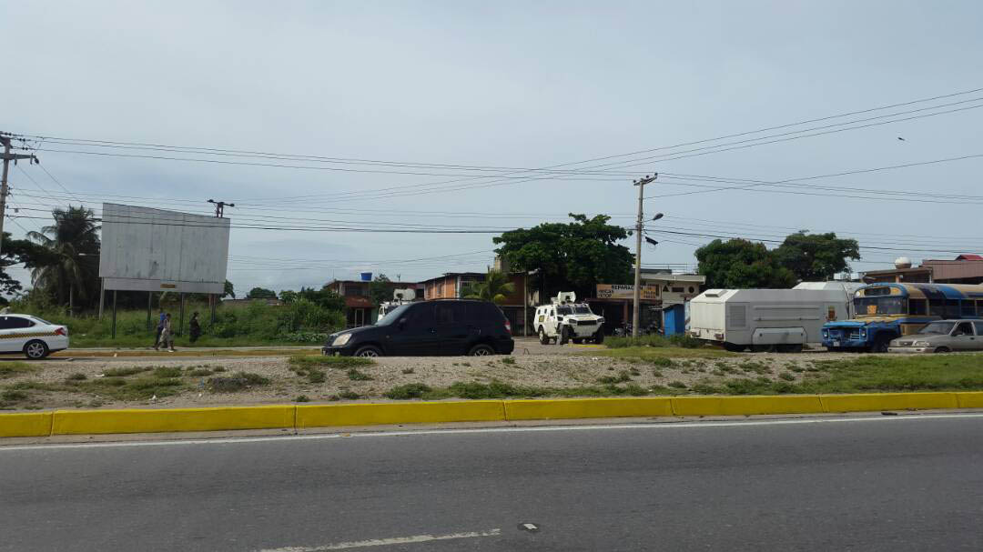 Al sur de la ciudad, se observó patrullaje policial. En la esquina de La Espiga de Oro en la zona de La Isabelica se apostaron dos tanquetas de la Guardia Nacional y un camión del mismo componente militar.