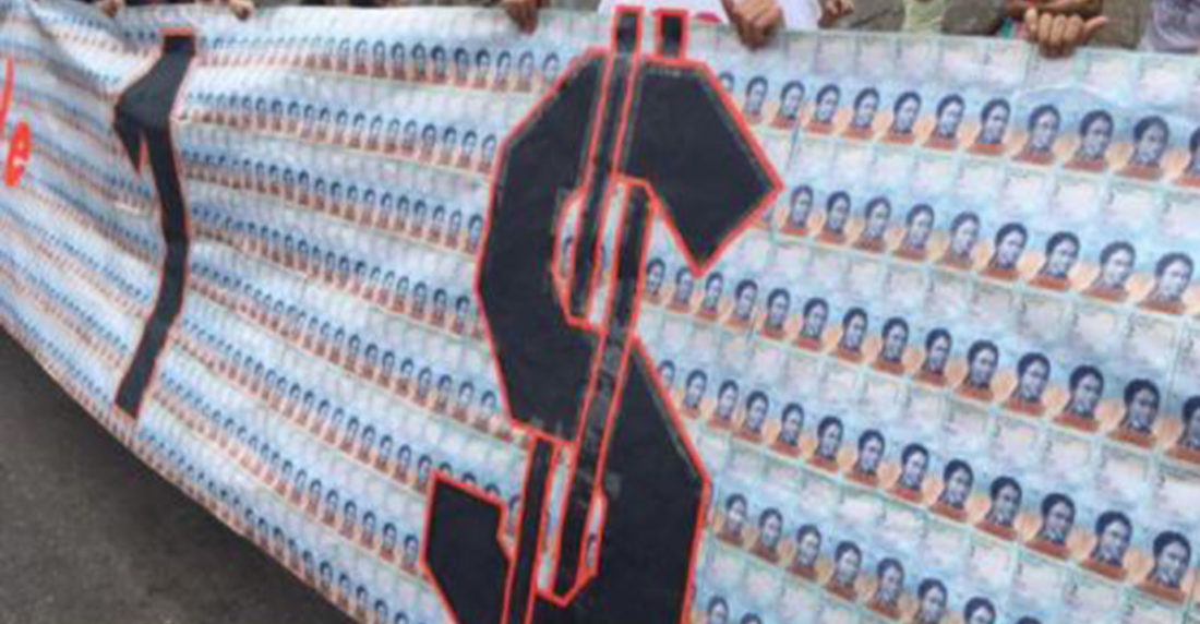 Manifestantes en Petare crearon una pancarta con 3.000 billetes de Bs 2 para representar la equivalencia de 1 dólar en Venezuela.Así lo informó Jorge Márquez, director de Cultura Sucre a través de su cuenta en Twitter. El cartel fue expuesto en el Gran Muro de Petare en el municipio dirigido por el alcalde opositor Carlos Ocariz.