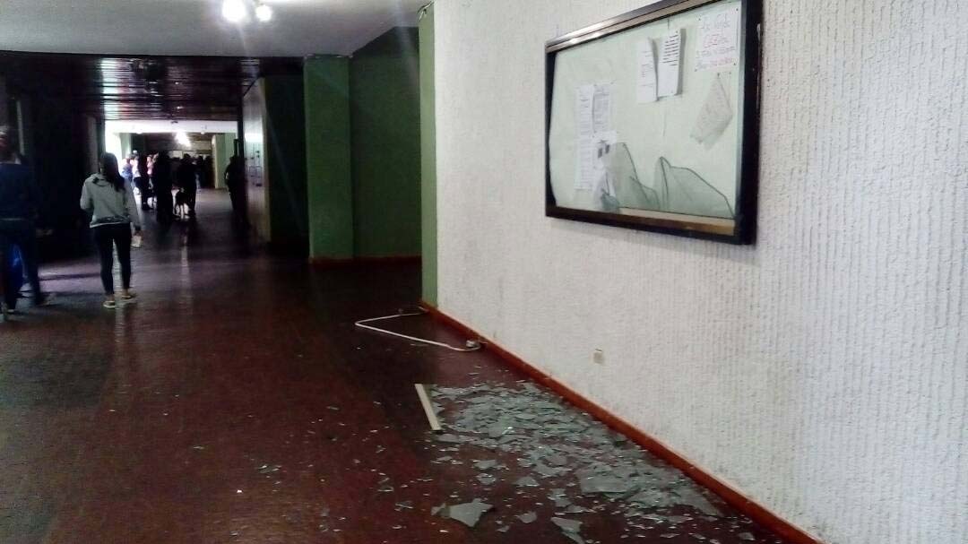 En el estacionamiento se observan a simple vista los desmanes de los funcionarios de seguridad. Hay vidrio en el suelo, del que le rompieron a los vehículos que se encontraban allí estacionados. Destrozaron los cristales hasta de los carros que estaban entre rejas. Un hombre que veía el desastre dijo: «Se observa el impacto no sabemos de qué. No sabemos si son balas, perdigones o si les dieron con una palanca. Son como martillazos. Dañaron cauchos, rompieron baterías y hurtaron reproductores». A la camioneta de Gladys Carrero la golpearon entre las rejas: «El vidrio tiene un impacto de bala. Se robaron los parales. Esto es vandalismo puro. Los guardias no tenían uniformes, sino franelas negras. Nos dejaron sin agua porque dañaron el motor del tanque y sin luz durante dos horas».