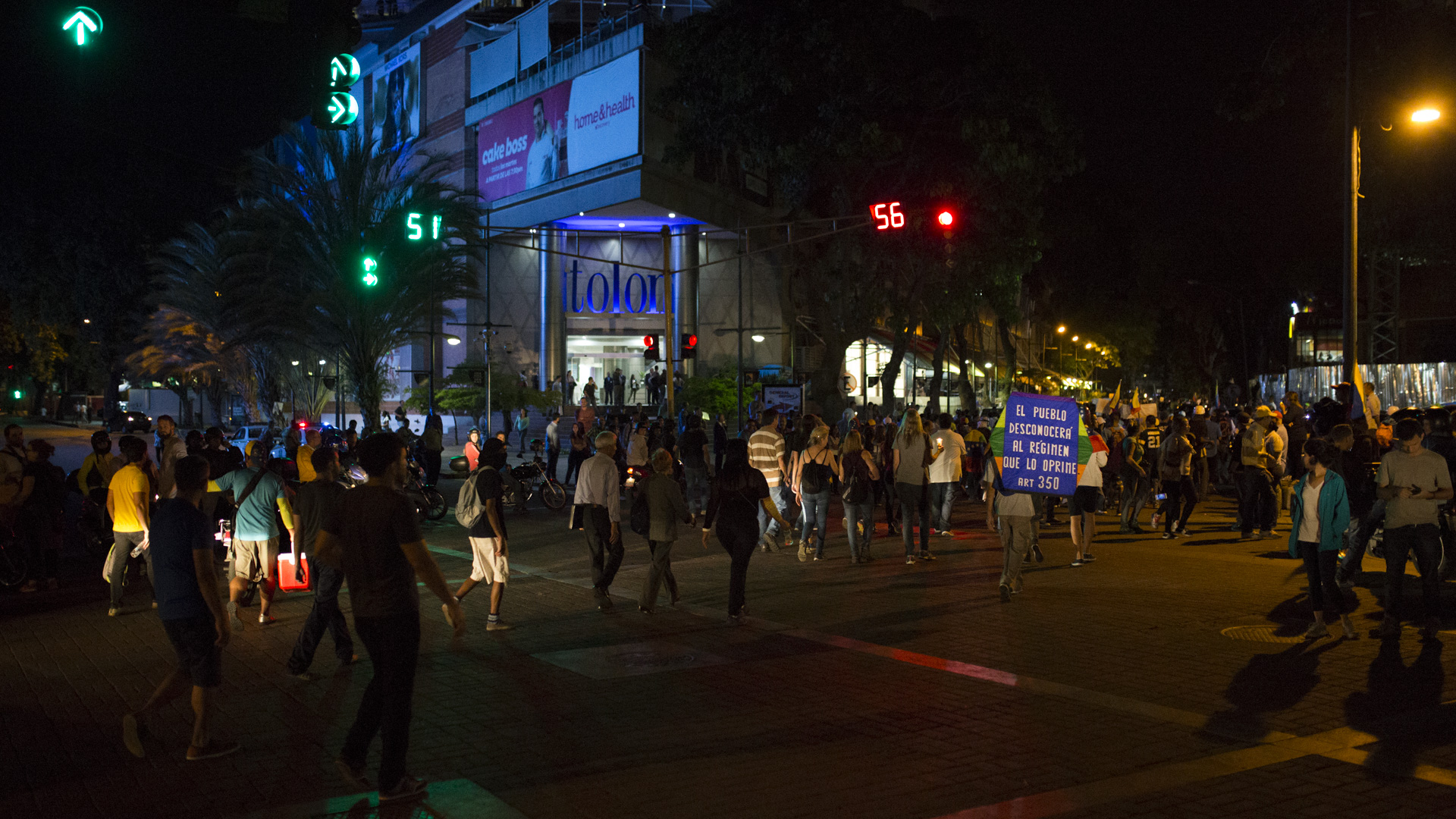 Luego de eso, continuaron su caminar hasta la sede del ente regional. En el camino, religiosos que participaban en la movilización, rezaban constantemente por el alma del muchacho y por la paz de Venezuela, iluminados con las velas que portaban los ciudadanos y las luces de los vehículos y las calles. Junto a ellos, jóvenes de la «resistencia».