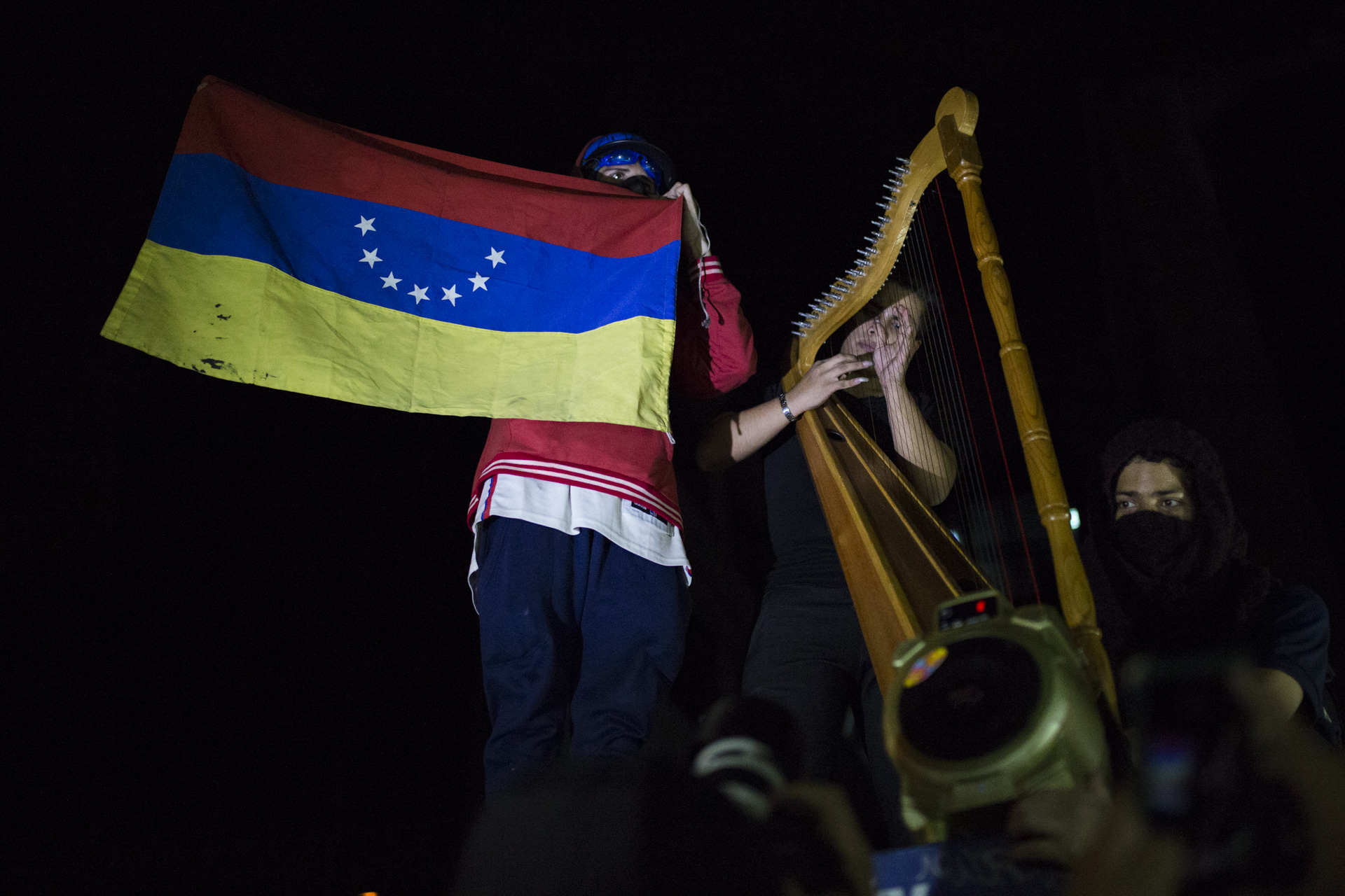 El clima fue benevolente. Dejó a los manifestantes llegar a su destino. En esta oportunidad, la música llanera se hizo presente. Un joven con un arpa tocaba incesantemente piezas de nuestro folclor, así como lo hiciera el violinista Wuilly Arteaga.