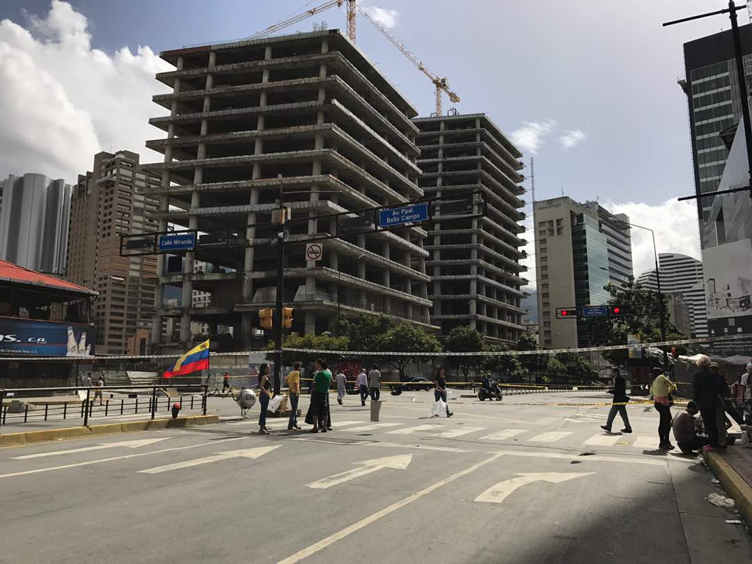 Los opositores en Chacao bloquearon las calles y avenidas con cuerdas, bolsas de basura, vigas y mensajes de desobediencia. Jóvenes manifestantes de «la resistencia» con sus rostros enmascarados cobran «peaje» de Bs 100 a las personas que cruzan a pie el sector donde se encuentran agencias bancarias y sedes ministeriales. Transitar en carro por Altamira, Los Palos Grandes y Santa Eduviges resulta imposible. Hay barricadas en casi todas las esquinas.