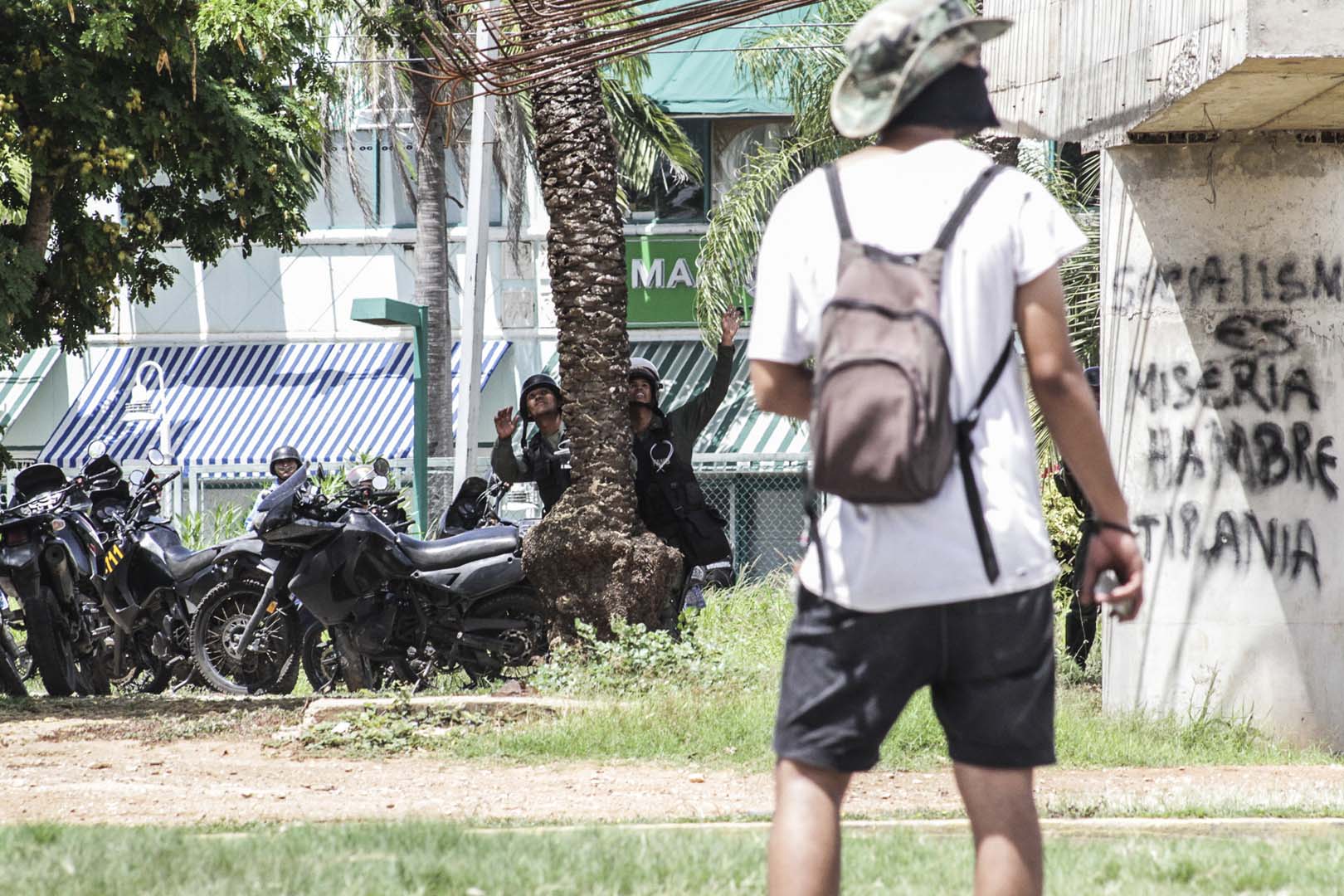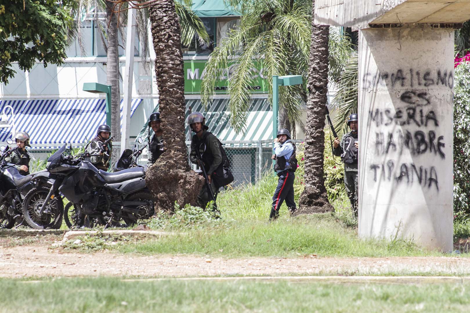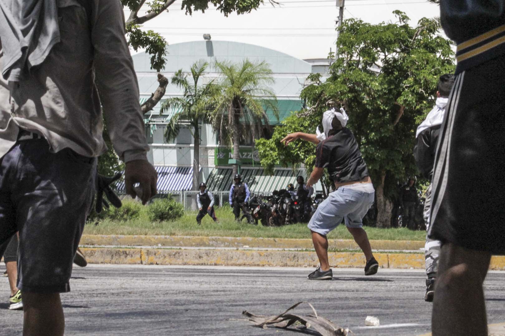 Barricada que colocaran inmediatamente era retirada por los efectivos de seguridad, quienes señalaron que bajo ningún concepto permitirían el cierre de las vías. Los enfrentamientos se produjeron principalmente en la plaza de Las Banderas y Mundo Nuevo, en el municipio Maneiro; y en La Fuente, Antolín del Campo; pero también estuvieron en Juan Griego y en todos los sectores que se sumaron a la protesta.