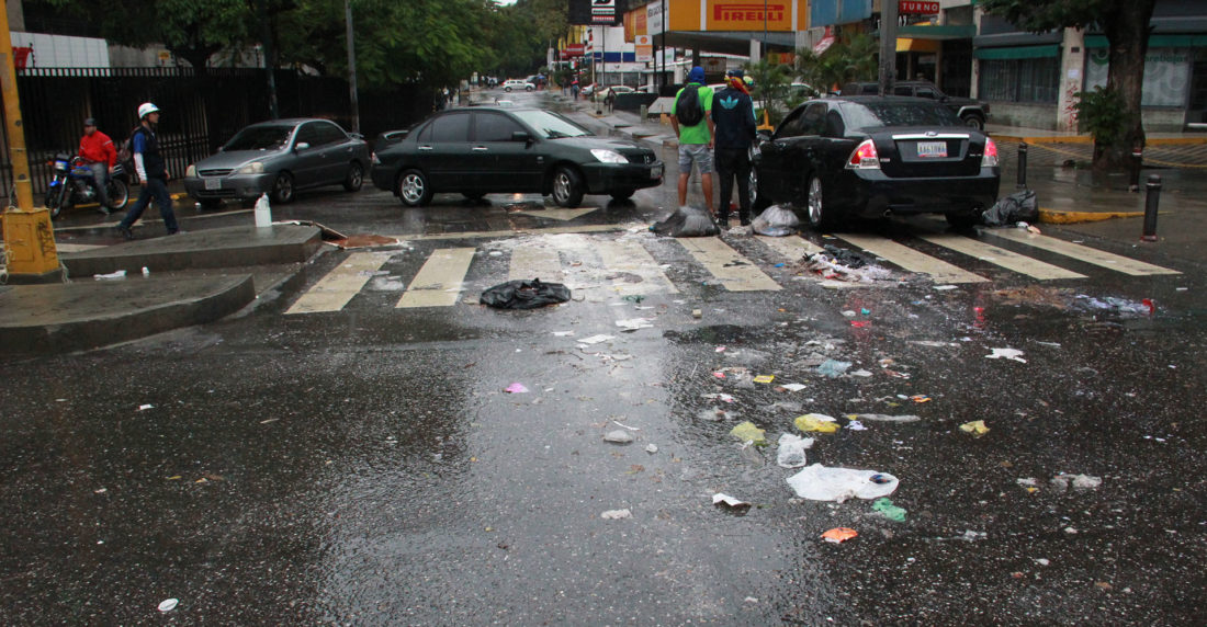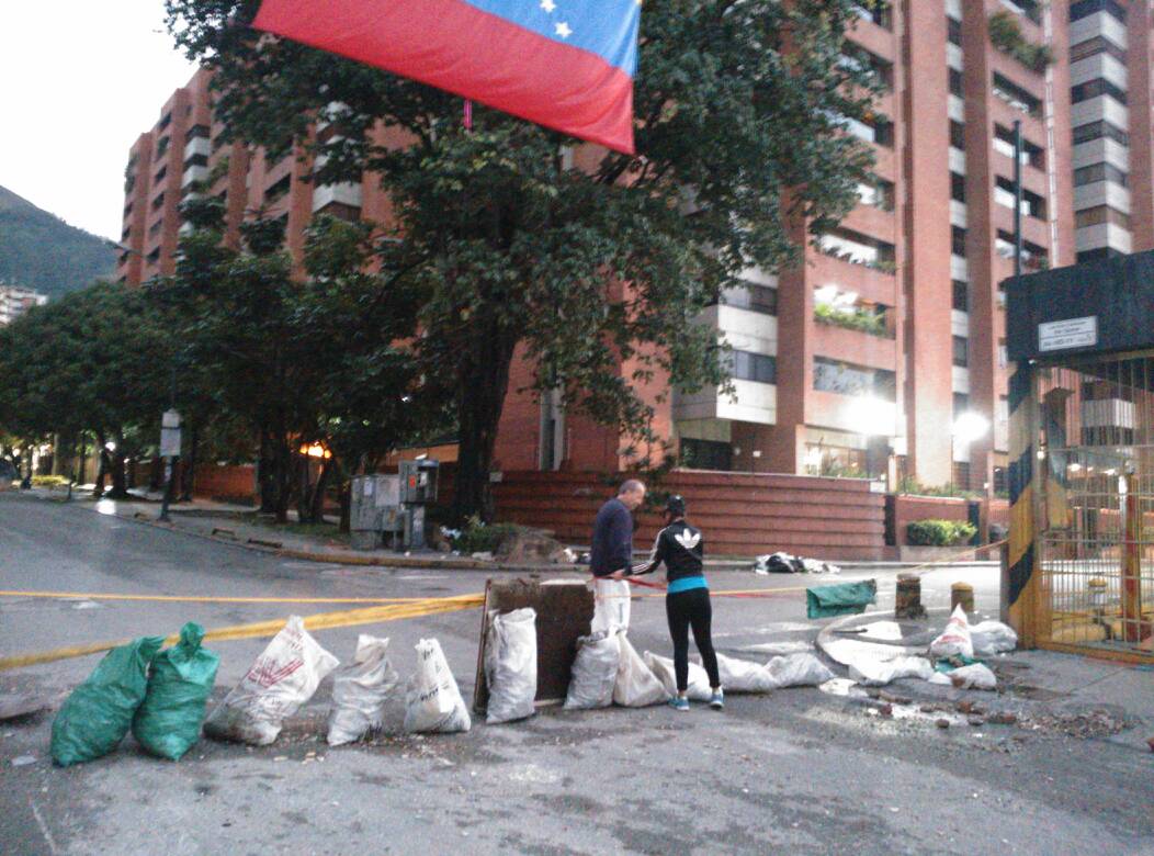La gran mayoría de calles y todas las avenidas del este de Caracas se encuentran bloqueadas con barricadas que se levantaron con escombros, bolsas de basura palos o tierra, informan las cuentas de Twitter de las policías municipales.