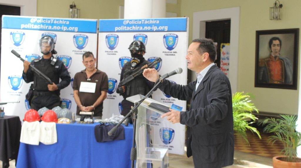 El gobernador del Táchira presentó ante los medios de comunicación a Volcán y lo señaló de “delincuente” y lo culpan de «actos terroristas contra la paz ciudadana».