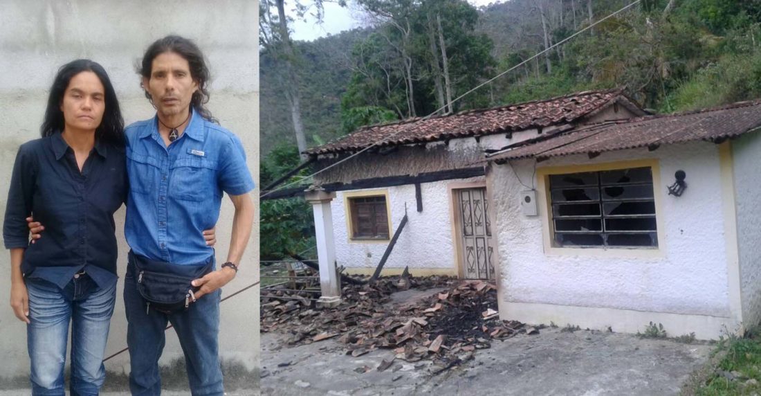 “Tiraron una molotov contra la puerta de madera. Comenzó a incendiarse el porche de madera, la pared de caña brava, los muebles artesanales. Salimos para no morir dentro de la casa. Somos flaquitos y pequeños, pero estábamos dispuestos a defendernos. Ellos volvieron a retirarse y nosotros escapamos por miedo a que volvieran. ‘Qué ropa ni que nada’ vamos, me dijo uno de los vecinos”.