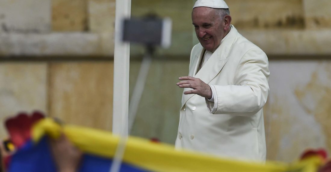 De otro lado, estudiantes y funcionarios de la Universidad Pontificia Javeriana, regida por jesuitas (la misma congregación del papa Francisco, aprovecharon la oportunidad para enarbolar, al paso de la caravana, pancartas en tanto que en una tarima grupos musicales cantaron.