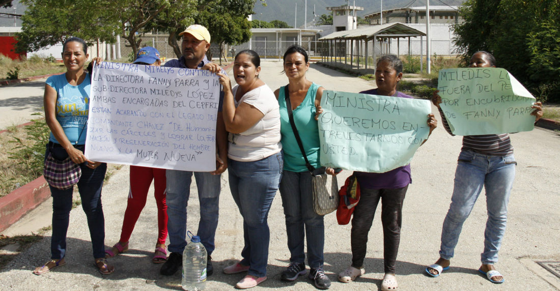 “La Ministra sabe que las muchachas son de buena conducta porque este penal funciona bajo el nuevo régimen penitenciario, un penal modelo. Da pena que las haya sacado con informes negativos como si fueran pranes cuando eso no existe en este centro. Es falso. Da pena que ella esté acabando con el legado del comandante Chávez, quien hablaba de la humanización del hombre y la mujer nueva. No respetan los derechos humanos ni de las privadas ni de sus familias”, gritó Angélica Neira, hermana de una de las detenidas.