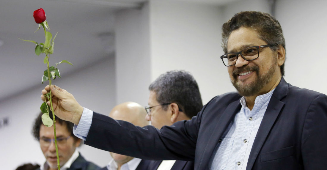El viernes 10, el alto comisionado para la Paz y ex embajador de Colombia, Rodrigo Rivera, dijo que el lunes 13 retirarán al ahora partido político Fuerzas Alternativas Revolucionarias del Común (FARC) del listado de agrupaciones terroristas de la Unión Europea (UE) durante el consejo de ministros de Bruselas. Al día siguiente la web del Partido Comunista de Colombia anuncia que las FARC se reúnen en Venezuela.
