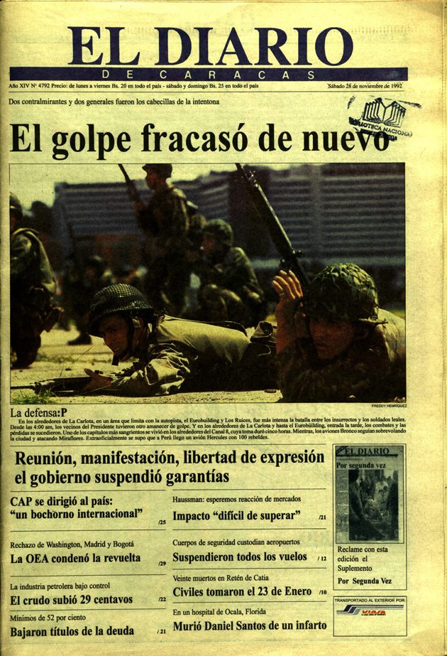 En 1992, Venezuela vivió dos intentos de golpe de Estado contra el entonces presidente Carlos Andrés Pérez. El primero, realizado el 4 de febrero y liderado por Hugo Chávez, y el segundo, que se registró nueve meses después, de la mano de un grupo de oficiales que, bajo la denominación del "Movimiento Cívico-Militar 5 de julio", llevaron acciones militares para hacerse con el poder, pero las fuerzas leales al Gobierno controlaron la sedición. Ese fue el mismo día en que se "rompió la barrera del sonido" en Caracas.