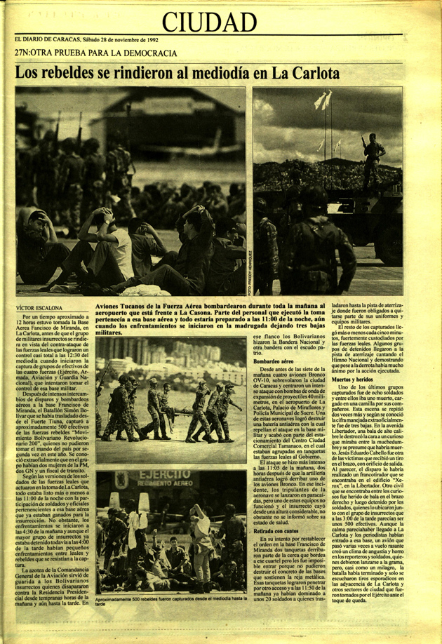 A continuación, le dejamos también algunas imágenes que retratan lo cruento de este día, provenientes de los portales Venezuela Comunidad y Notitotal. Es necesario recordar que durante del gobierno de Hugo Chávez, el día de la Aviación fue cambiado del 10 de diciembre al 27 de noviembre, con el fin de «honrar» esta acción que buscó violentar el orden constitucional del país. ]]>