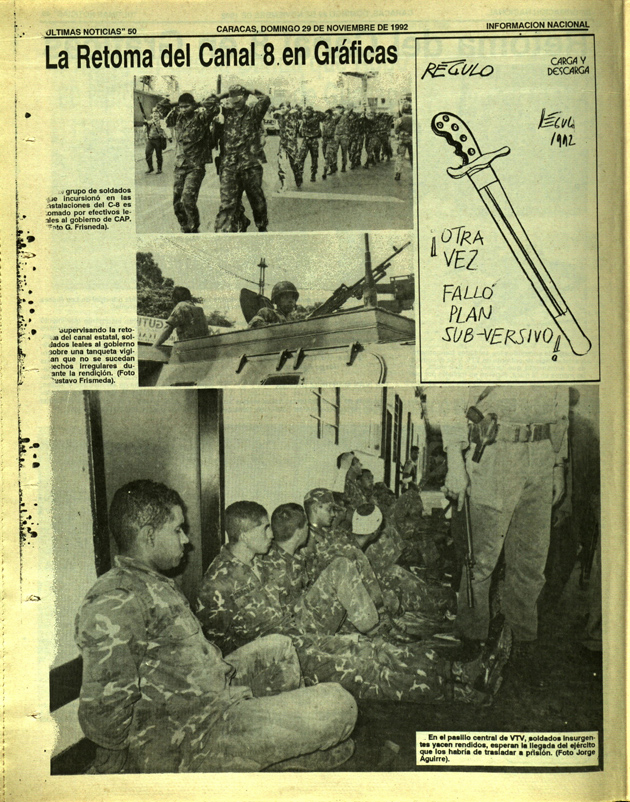 En estas acciones se recuerda la actuación del entonces teniente, Jesse Chacón, en el canal del Estado Venezolana de Televisión, quien también ordenó la toma de las antenas repetidoras de Radio Caracas Televisión y Venevisión. En la incursión a VTV, los soldados insurgentes asesinaron a varios trabajadores de la planta.