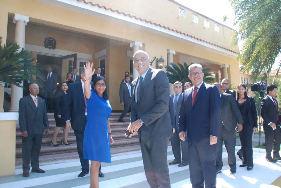 El Ministro de Comunicación, Jorge Rodríguez, volvió a colocar como excusa la falta de medicinas y alimentos, así como las sanciones del gobierno de Estados Unidos. Demandaron ademas que los asesores de la Mesa de la Unidad Democrática no estuvieran dentro de la cancillería dominicana.