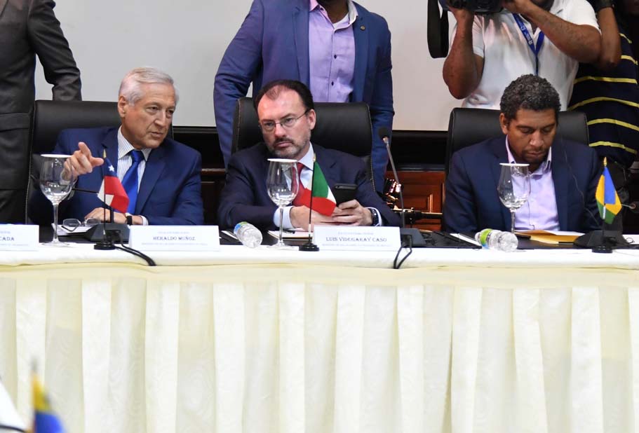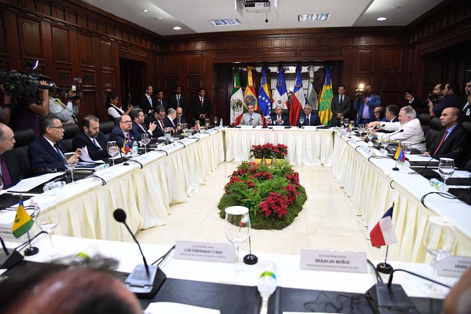 En horas de la manaña de este viernes, el primero en llegar al lugar de la cita -una vieja propiedad del dictador Rafael Leonidas Trujillo- fue el canciller de República Dominicana, Miguel Vargas, junto al ministro de la Presidencia de Bolivia, Carlos Romero. Posteriormente comenzaron a llegar el resto de los cancilleres de Chile, México, Bolivia y Nicaragua, así como el ministro de Finanzas de San Vicente y las Granadinas. La reunión estaba pautada para comenzar a las 9:00 AM y a esa hora puntual, llego el presidente de la nación anfitriona, Danilo Medina.