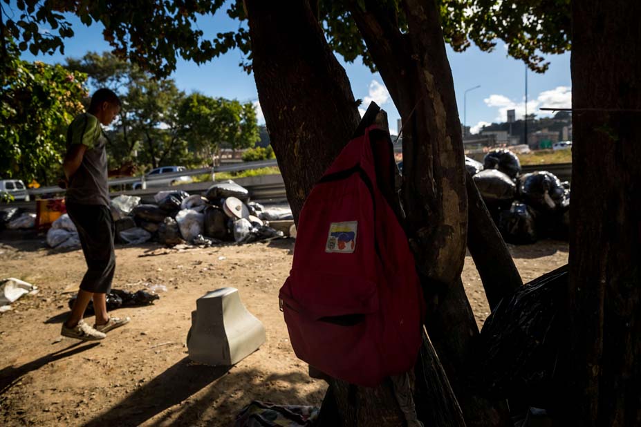 A menos de un kilómetro, al lado del puente de Los Ruices, en una zona que debería ser verde pero que ahora sirve como vertedero de basura, están los autodenominados «recicladores», que dicen vivir «por la zona» desde 2011, aunque para entonces no eran tantos.