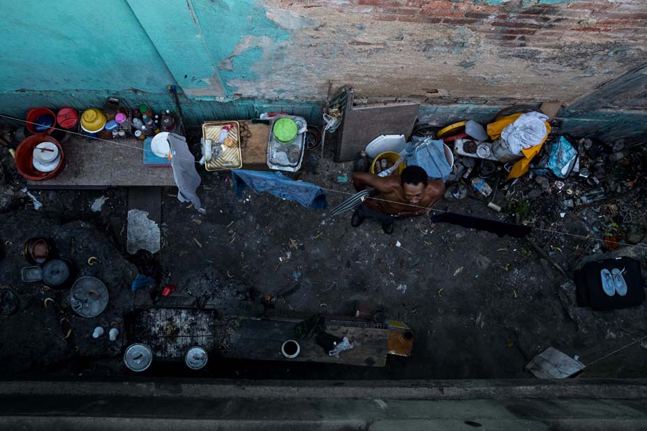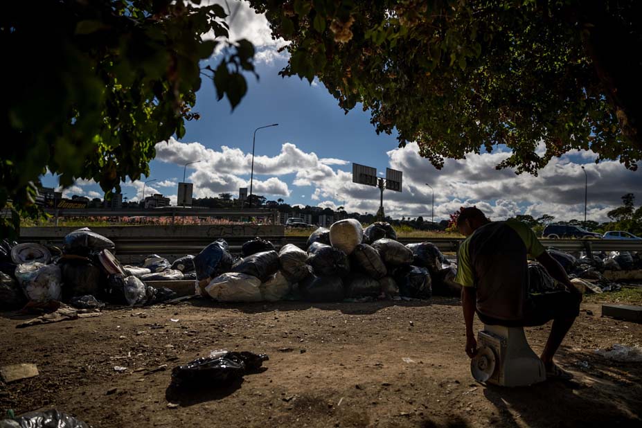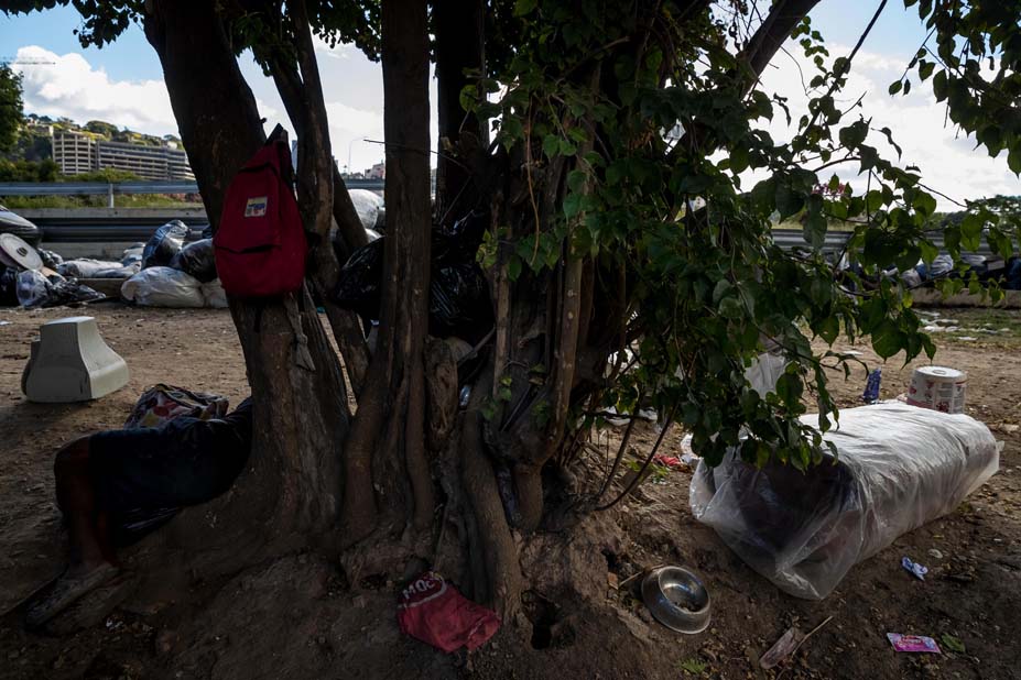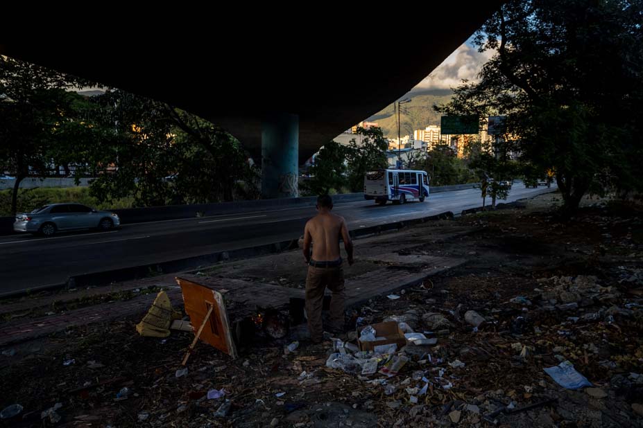 A unos 14 kilómetros al oeste de los recicladores, en la urbanización del oeste de Caracas llamada El Paraíso está el albañil Eduardo, de 50 años, viviendo bajo un puente.