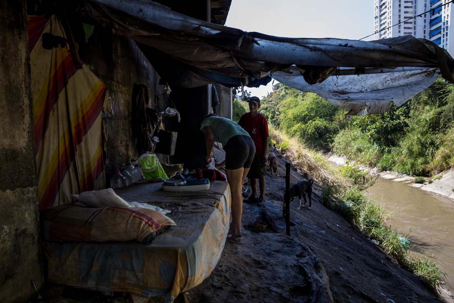 «Estamos aquí porque tenemos cuatro años en un refugio al que nos llevaron cuando una lluvia se llevó la casa, no nos dan trabajo, ni una vivienda y ahora ni siquiera comida», contó a Efe Andy, de 32 años, padre de tres hijos menores de 4 años, que junto a su pareja, de 23 años, vive bajo de ese puente desde hace meses.
