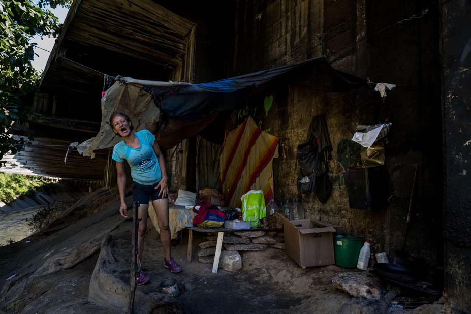 Entretanto, en otro puente ubicado en el centro de la ciudad vive Mónica Ceballos, transexual de 30 años que tiene VIH y se identifica como «seguidora del Gobierno» de Maduro pese a que lo critica porque le promete ayuda «pero nada» pasa.