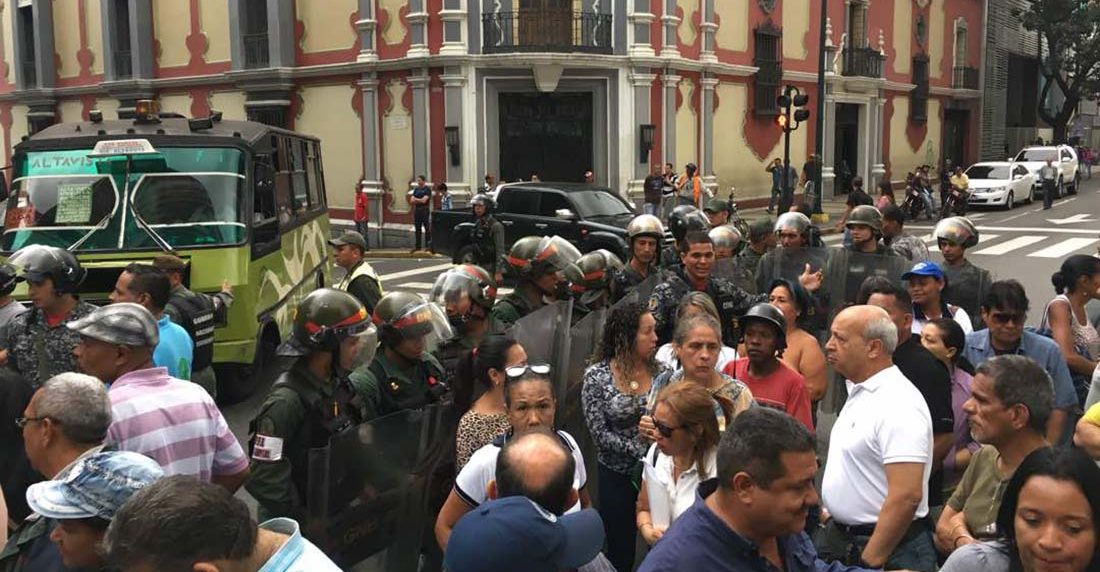 Funcionarios de la Guardia Nacional Bolivariana (GNB) dispersaron de la sede de la Vicepresidencia de la República, a los trabajadores de la Alcaldía Metropolitana de Caracas que exigían el pago de sus aguinaldos y respuestas sobre su futuro dentro de la administración pública.