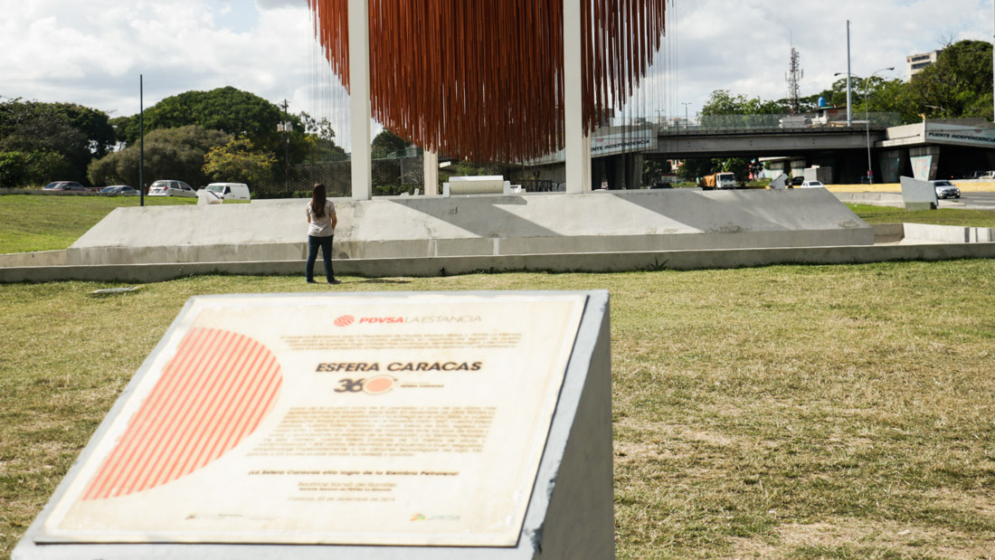 Una hora después de llegar, Eliana y Carlos se despiden y toman camino por la autopista hacia el Este. 15 minutos después llega Luisana, sola. Antes de tomar una foto se queda mirando detenidamente la «genial, imponente» obra del maestro Soto. Toma un par de fotos y se va. La Esfera Caracas se queda sola, toma un respiro, esperando por sus próximos visitantes.
